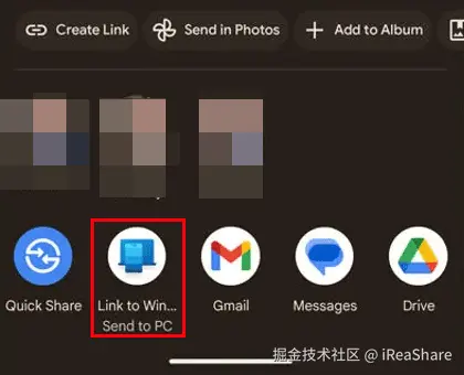 步骤 4: 查找“链接到 Windows ”或“发送到 PC ”。然后从列表中选择您连接的电脑。接下来,视频将开始传输。
