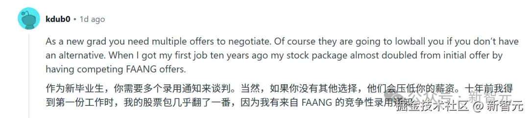 十多年前毕业的老前辈,大方分享出了自己的谈判技巧:手拿多份 offer 的话,你就有主动权了。如果没有其他选择的话,就只能接受被杀价。