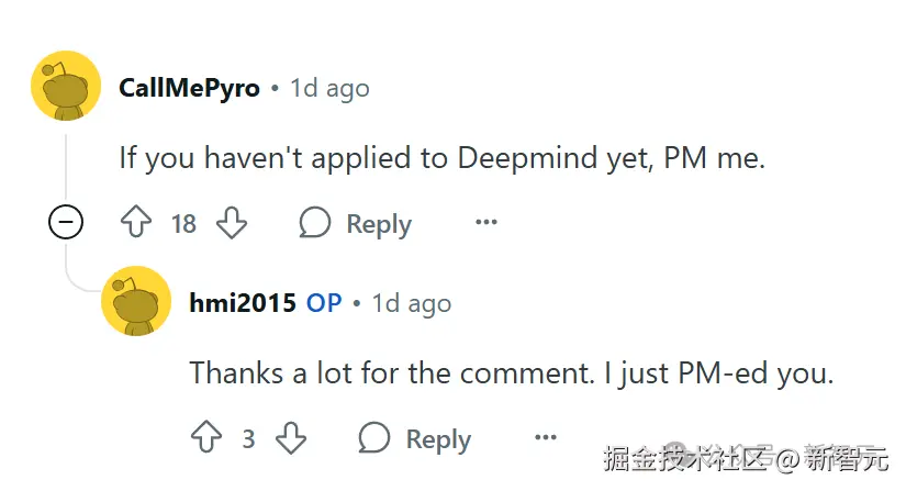 比如直接有人霸气留言:「如果还没申请 DeepMind,私信我。」
