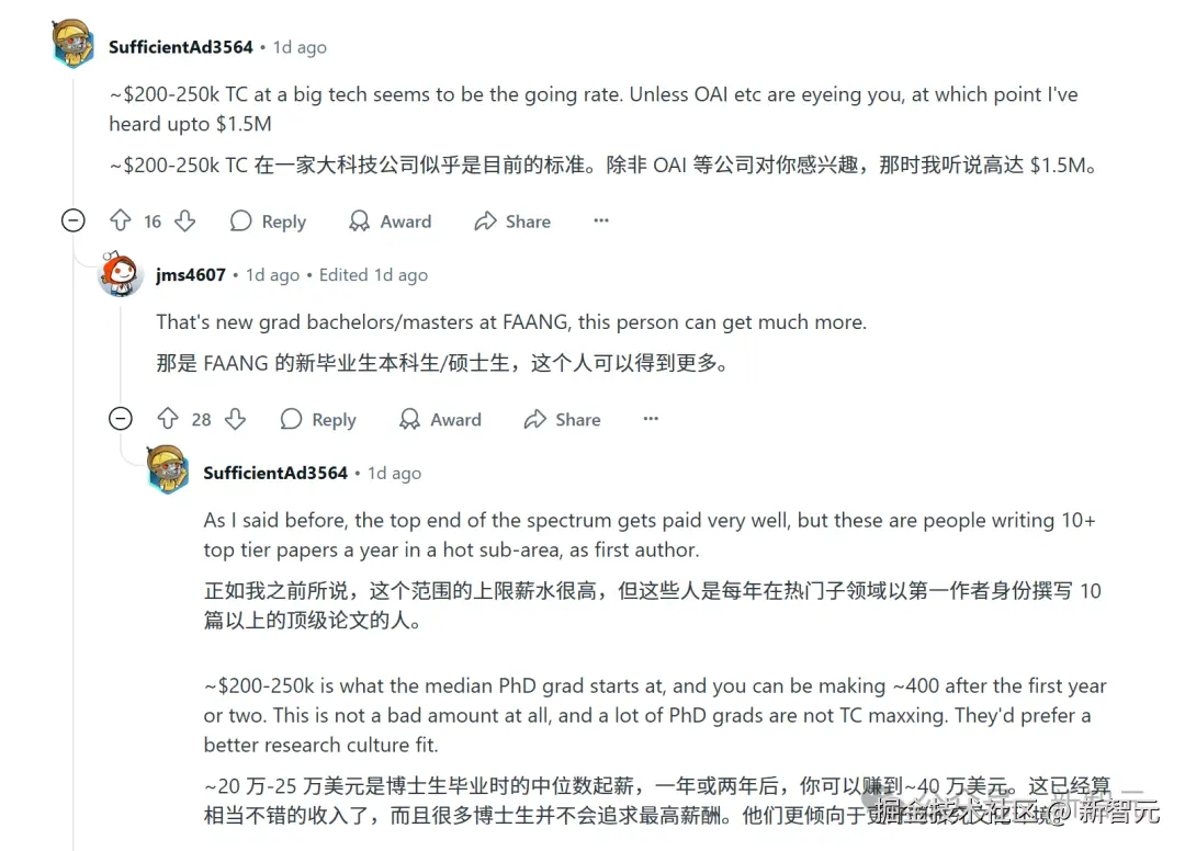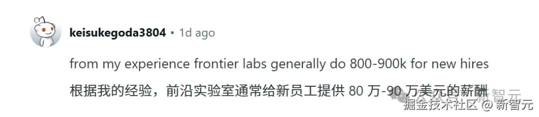 有人提供了身边的一手信息:前沿实验室给新员工的薪酬,一般是在 80 万 - 90 万美元。