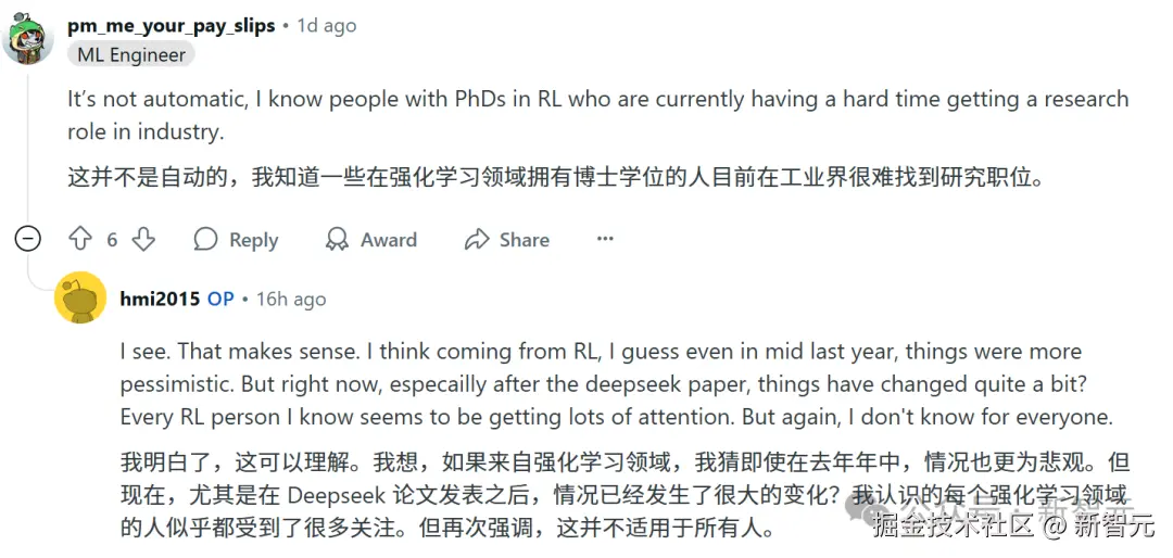 也有人说,有些 RL 博士甚至很难找到工作,发帖小哥表示,在去年年中,情况确实不太乐观。