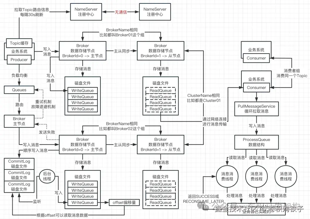 Broker故障的延迟感知机制:Broker故障后,虽然NameServer会通过心跳 + 定时任务可以感知并摘除掉它,但该故障的Broker信息无需实时通知Producer。通过Producer端的重试机制 + 故障退避机制,就可以让Broker故障时也能做到高可用。