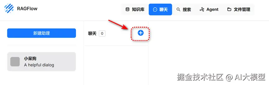 点击上方导航栏的“聊天”,再点击“新建助理”。