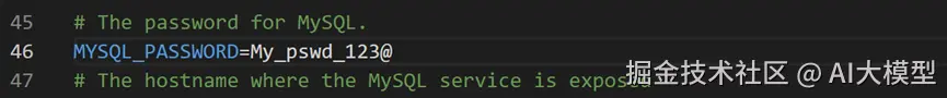 第三处修改,包括多个组件的密码,比如MYSQL_PASSWORD(第46行),等号后面的值改为自己要设定的密码。