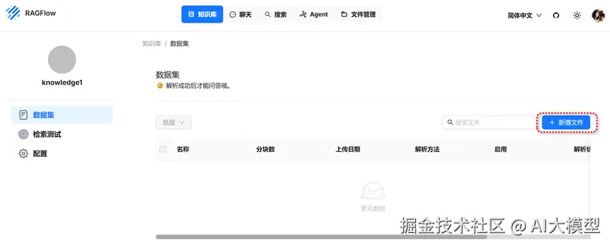 在弹出的窗口中,上传准备好的知识库文档。