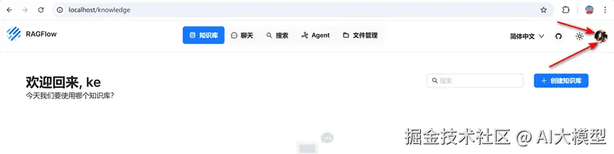 点击上方导航栏的“知识库”,进入知识库页面,点击右侧的“创建知识库”按钮。