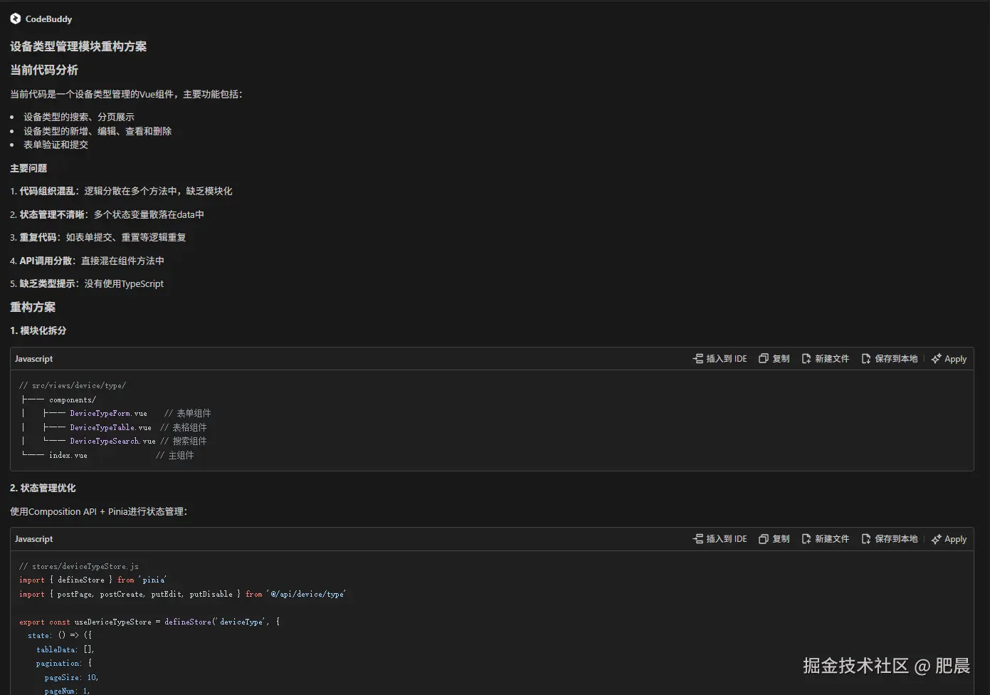 提问:"重构这部分代码" 这是CodeBuddy的回答: