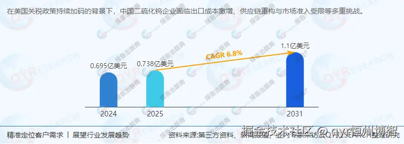 《2025年全球及中国二硫化钨企业出海开展业务规划及策略研究报告》报告中,QYResearch研究全球与中国市场二硫化钨的产能、产量、销量、销售额、价格及未来趋势。重点分析全球与中国市场的主要厂商产品特点、产品规格、价格、销量、销售收入及全球和中国市场主要生产商的市场份额。历史数据为2020至2024年,预测数据为2025至2031年。