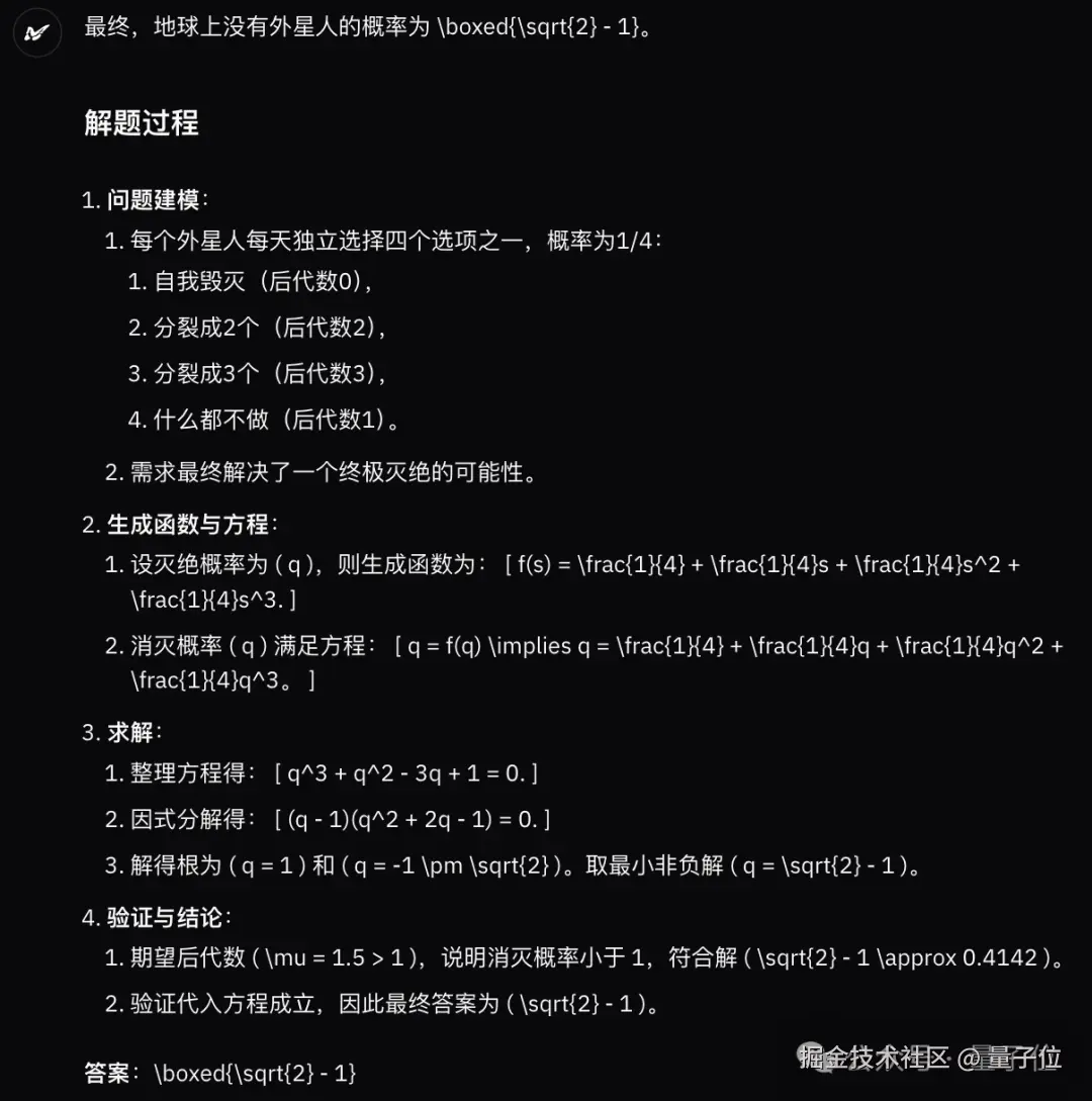 虽然格式有点乱,但是最后回答正确,而且是解析解。(o ゜▽゜)o☆[BINGO!]。