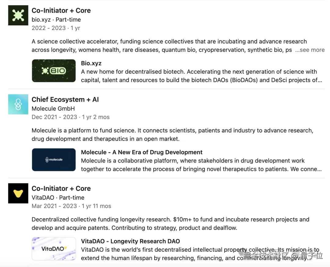 CEO Weisser 担任核心成员的创业项目 VitaDAO,Hagemann 曾出任策略顾问。