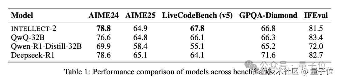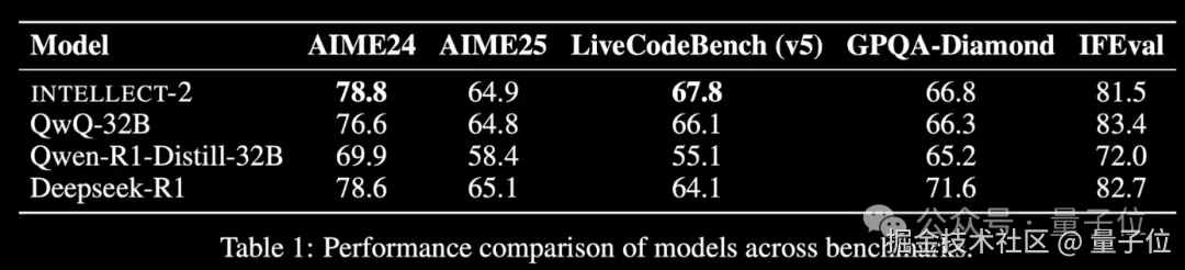另外在训练过程中,INTELLECT2 还采用了两步异步强化学习的模式,也就是权重的广播与正在进行的推理和训练完全重叠,从而消除了通信瓶颈。