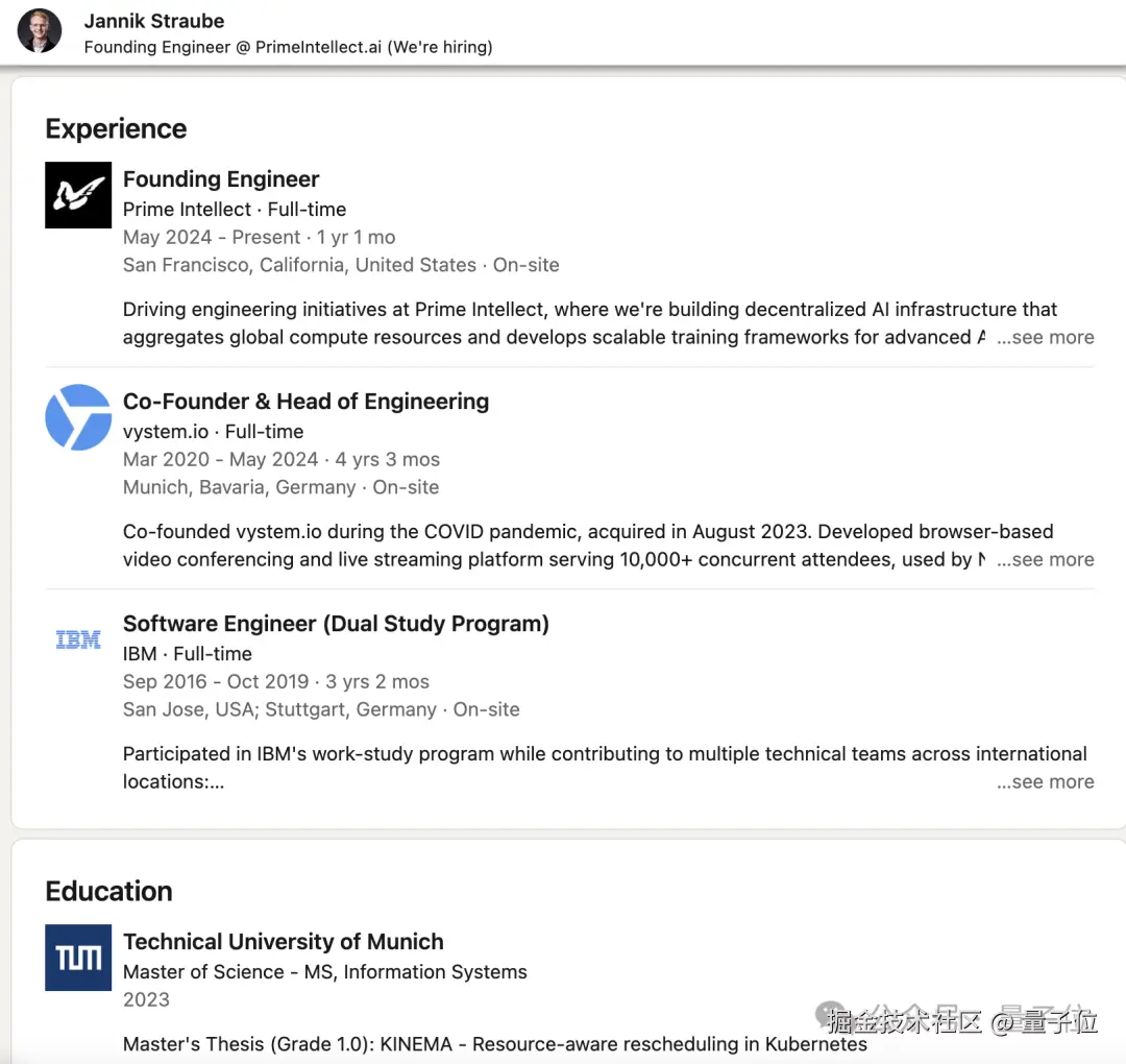 创始工程师 Jannik Straube,慕尼黑工业大学硕士,之前曾在 IBM 工作。