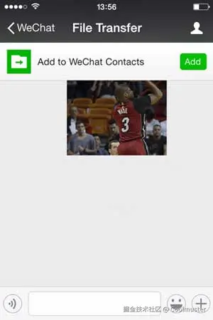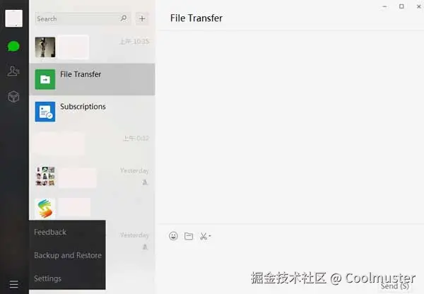 在微信中,选择“文件传输”作为接收方。这是一个私人聊天,您可以用来向自己发送文件。