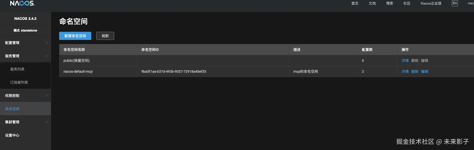 在 nacos 中注册新的 nacos-default-mcp 命名空间