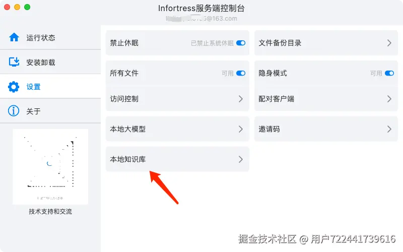 打开已安装的Infortress服务端,进入设置页面。找到“本地知识库”配置项,