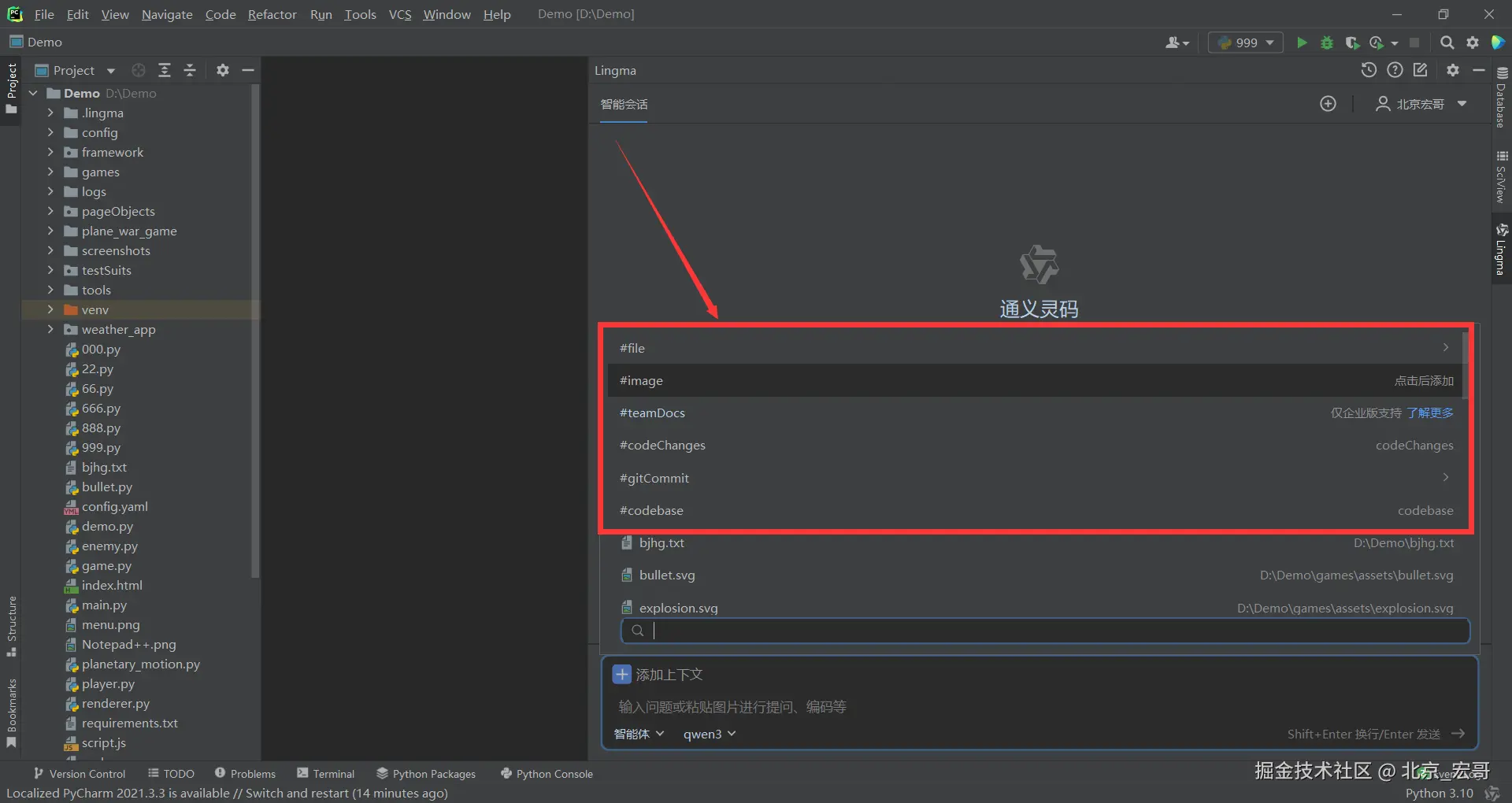 - 上下文支持工程目录、文件多选:在智能会话中,上下文新增支持工程目录,可以让开发者针对某个功能模块进行提问或修改。同时,优化上下文选择交互,对于