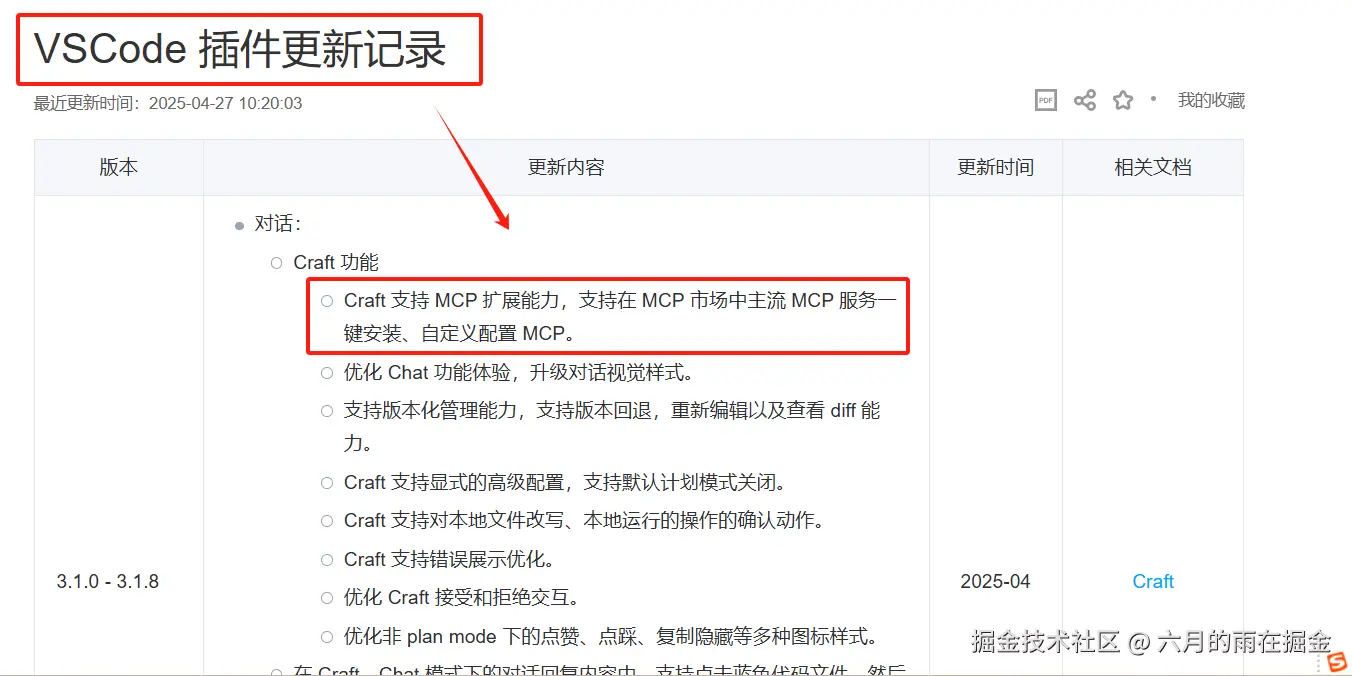 在官方文档关于VSCode 插件更新记录中我们可以看到,本次 VSCode 的CodeBuddy 插件更新后的Craft 支持 MCP 扩展能力,支持在 MCP 市场中主流 MCP 服务一键安装、自定义配置 MCP