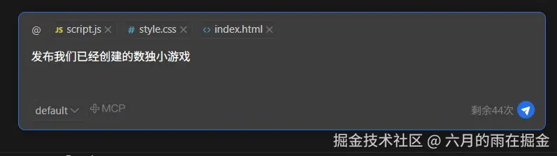 下面我们在Craft 的AI 对话框中输入我们的需求【通过我们配置的edgeone-pages-mcp-server发布我们生成的数独小游戏】,但是这里提示完成扫描目录之后没找到之前生成的数独游戏文件,可能是因为我重启电脑后导致原来的会话丢失,