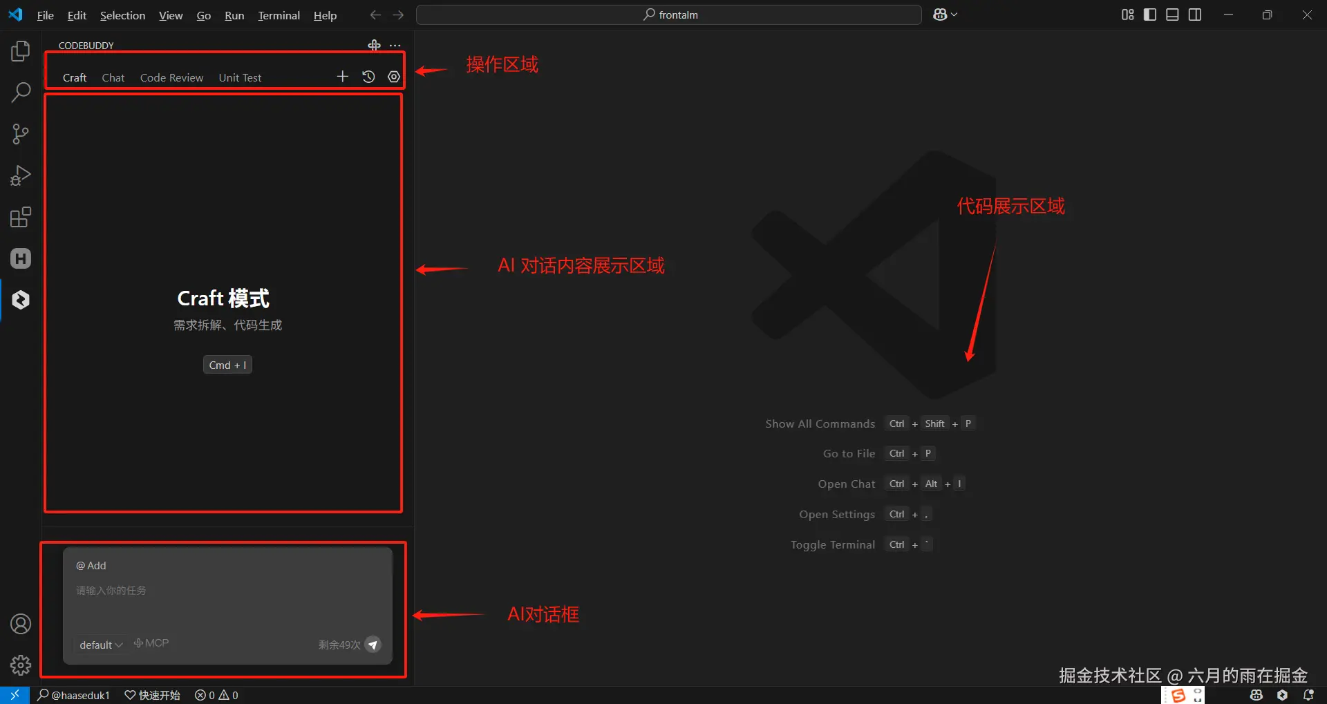 在上面我们已经安装好了我们的 vscode 开发工具以及CodeBuddy AI 代码辅助编程工具,那么下面我们就来提出我们的想法吧。
