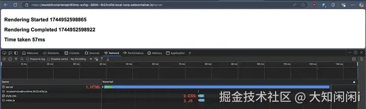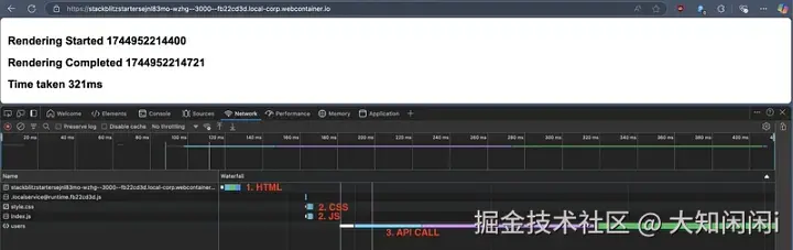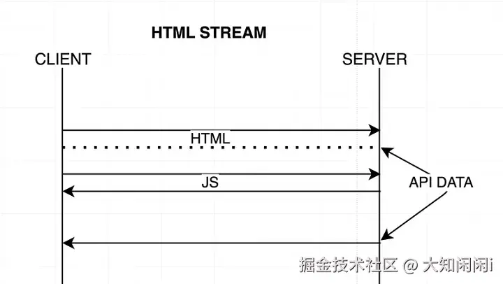 - 服务器获取 API 数据后,继续向浏览器发送剩余的 HTML 内容;