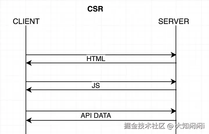 在 CSR 模式下,用户访问网站时会经历以下过程: