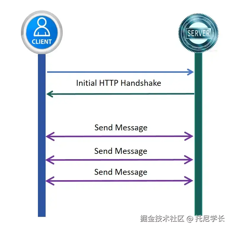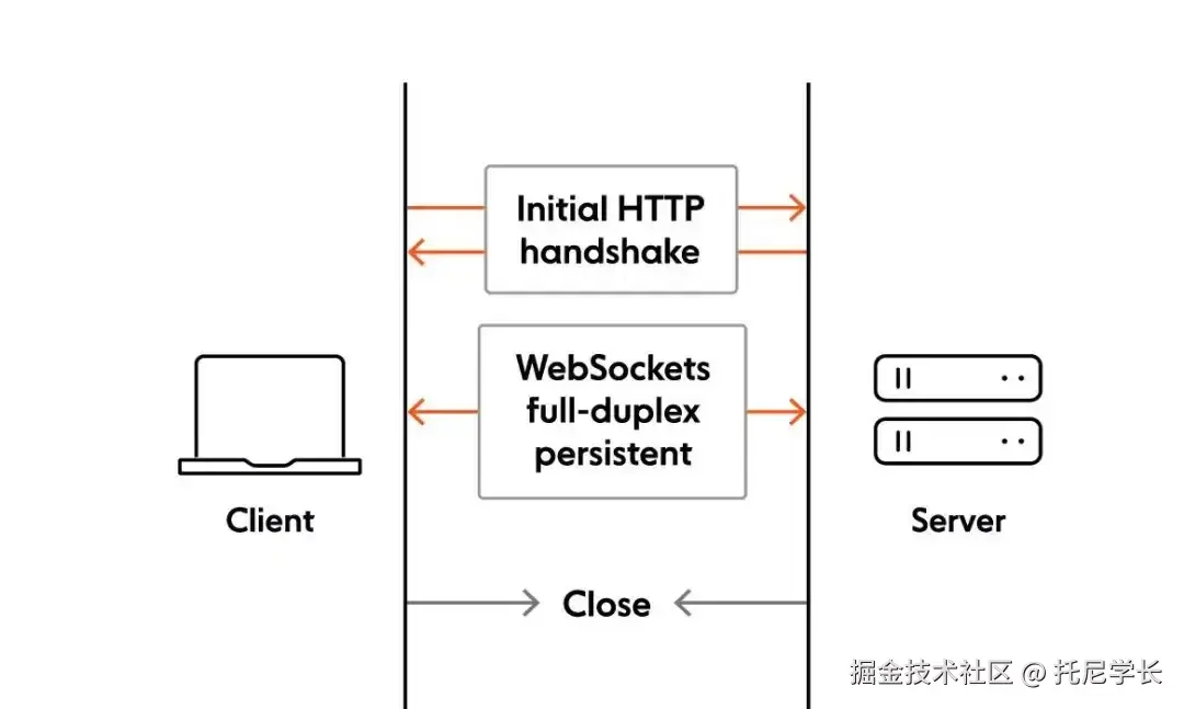 只需先通过HTTP协议进行握手并进行协议升级,即可让服务器端和客户端一直保持连接并实现通信,直到连接关闭。