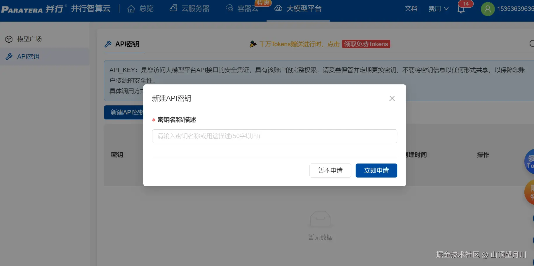 - 新用户可领取免费Token额度(具体以平台政策为准,新用户可送40元通用券和免费tokens)