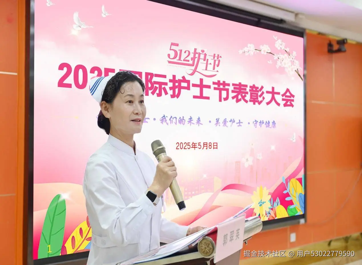 大会由护理部郭翠英主任主持。她以饱满的热情向莅临现场的领导及参会人员致以热烈欢迎,并向坚守在护理一线的全体同仁送上节日的诚挚祝福与问候。