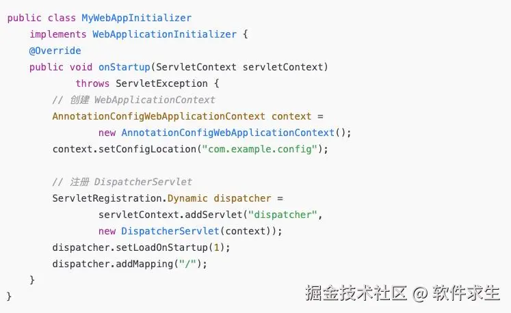 SpringMVC 中,WebApplicationContext 的初始化通常是在 DispatcherServlet 加载时完成的。它的整个过程分为几个步骤: