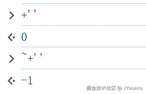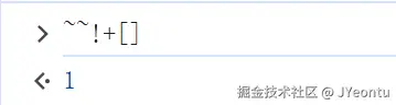 +[]为0,!0为true,~~true两次取反得到1。