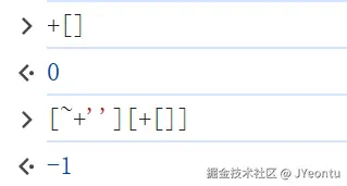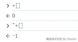 +[]将空数组转换为数字0,~0按位取反得到-1。