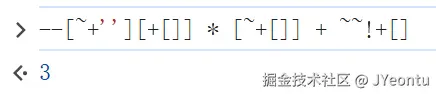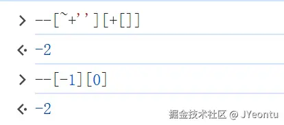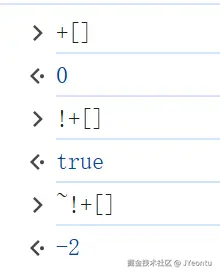 +[]为0,!0为true,~true按位取反得到-2。