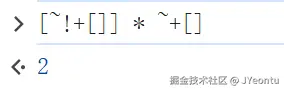[-2]转为数字-2,~+[]为-1,计算:-2 * -1 = 2。