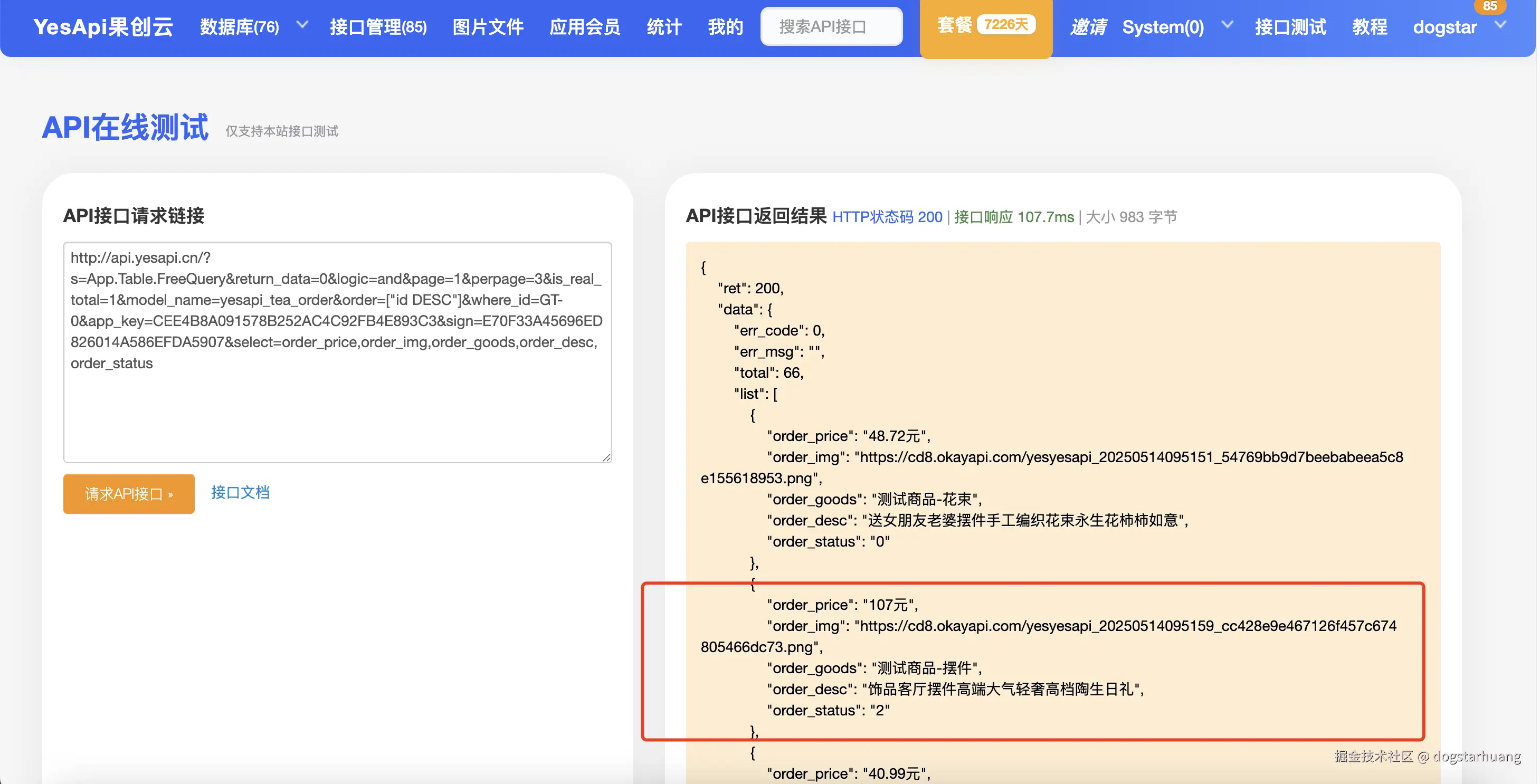 由于需要存放自己的数据表单和提供API接口,这时我们可以先在果创云 YesApi.cn 平台,免费注册并在线创建自己的数据表单,例如我要存放我的订单数据,并事先准备好我的订单测试数据。
