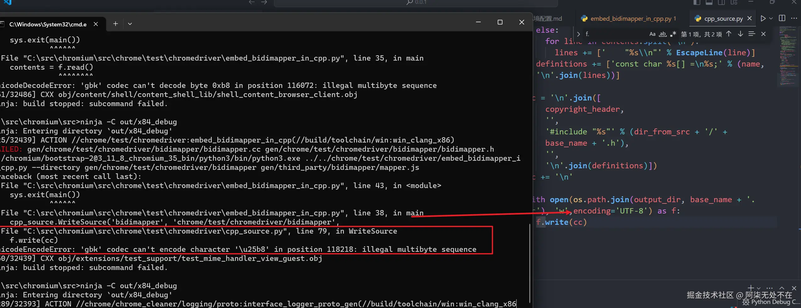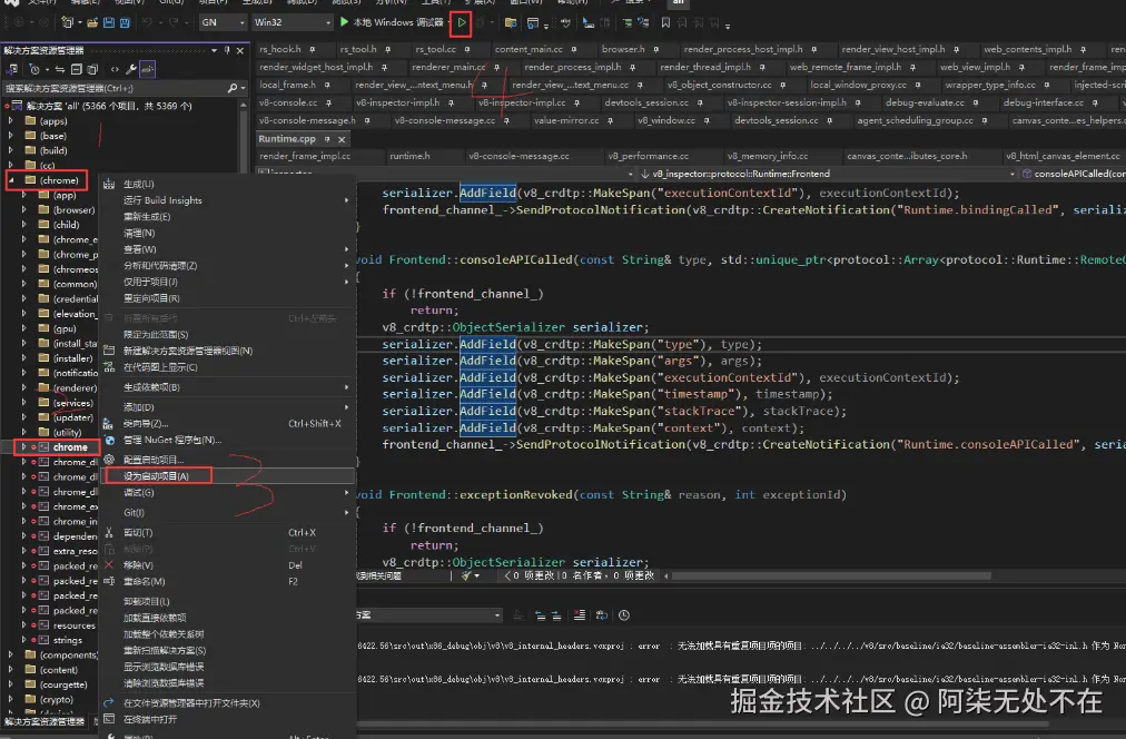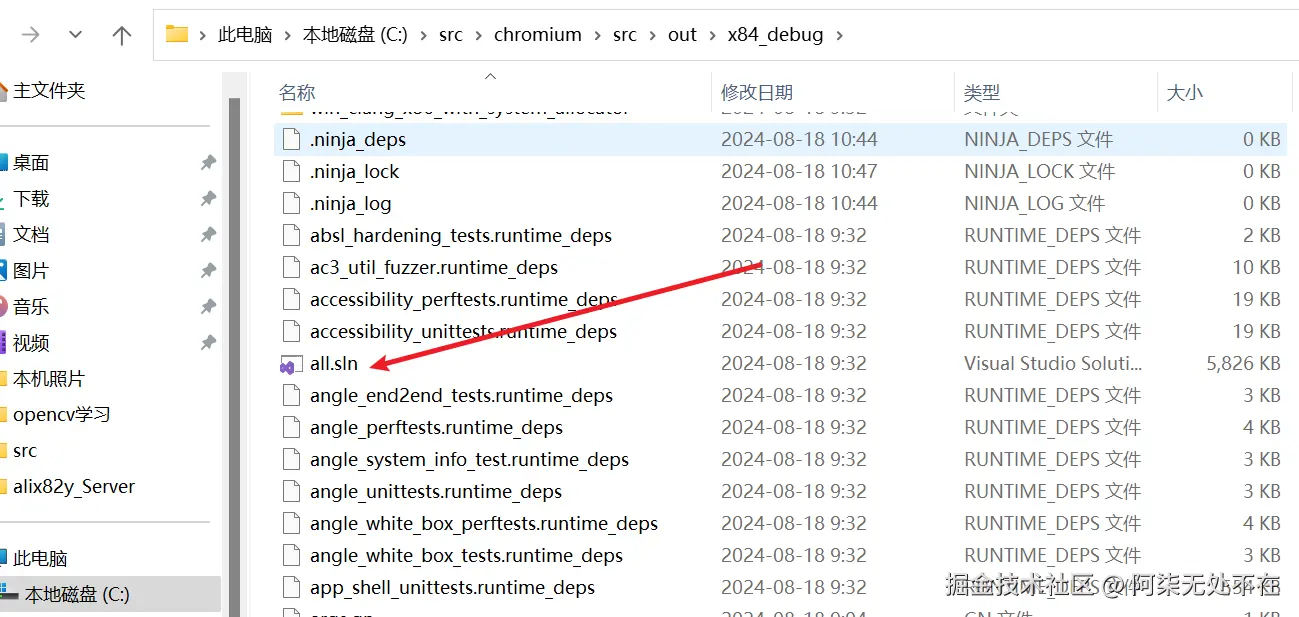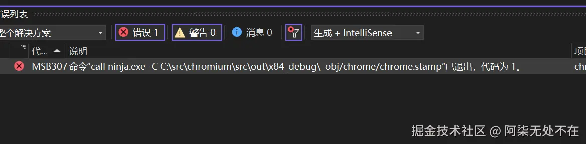 如发现错误缺少 ninja.exe,请将其放入最初配置的 depot_tools 文件夹中。