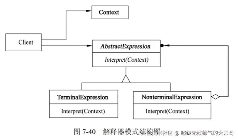 | Interpreter解释器模式 | 给定一种语言,定义它的文法表示,并定义一个解释器,该解释器用来根据文法表示来解释语言中的句子 | 文法、解释 |