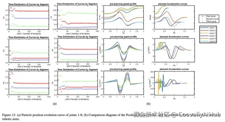 - 时间最优机械臂轨迹规划算法结合了蚁群算法和3-5-3间隔规划。它为粒子初始化引入了双混沌 Logit-Tent 映射,并采用非线性递减策略调整惯性权重,解决了标准粒子群算法中收敛过早和收敛缓慢的问题。