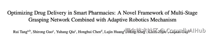 本文开发并评估了一种集成先进软件算法与硬件功能的创新型智能药品分拣系统,以解决智慧药房中的复杂抓取难题。提出采用改进SRCNN模型对药品图像进行超分辨率重建的多阶段抓取框架,提升特征捕获准确性,为抓取决策提供清晰视觉输入。提出YOLO-EASB实例分割模型实现药品高精度空间定位与特征提取,经目标药品分割、背景剔除后输入IAFFGA-net获取药品抓取角度与宽度。为解决机械臂轨迹平滑与执行效率问题,采用改进PSO算法进行时间优化,提升系统作业能力并确保轨迹规划的平滑高效。实验结果证明多阶段抓取框架在优化智慧药房作业方面的优越性。相比现有方法,本系统在复杂环境中实现高精度实时药品分拣,准确率和效率显著提升,在实际应用中展现出卓越的适应性和有效性。