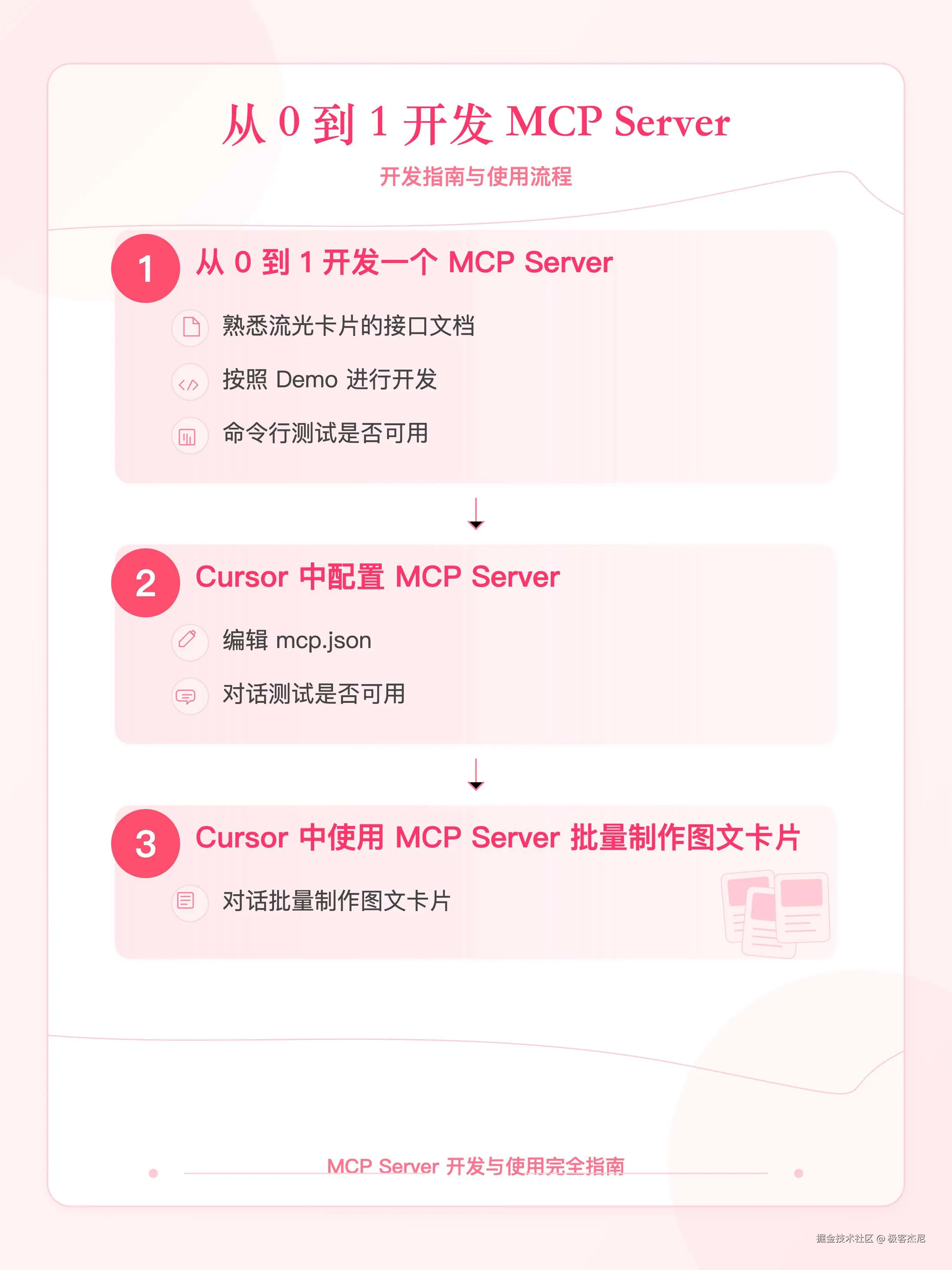 下面将我实践的思路分享给大家,欢迎交流和指正。使用流光卡片提供的 API 批量制作图文,有了 MCP Server 效率再上一个台阶。