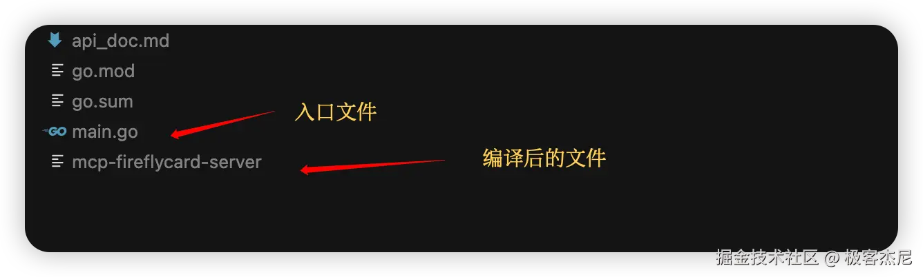 开发完成后,直接编译成可执行文件即可,我这里将执行文件命名为:mcp-fireflycard-server