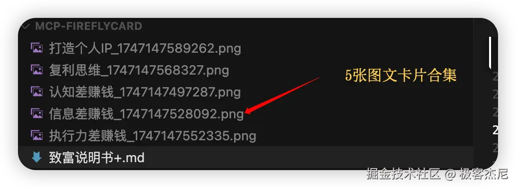 对话结束后,完整的5张图文卡片已经被保存到当前目录下了。