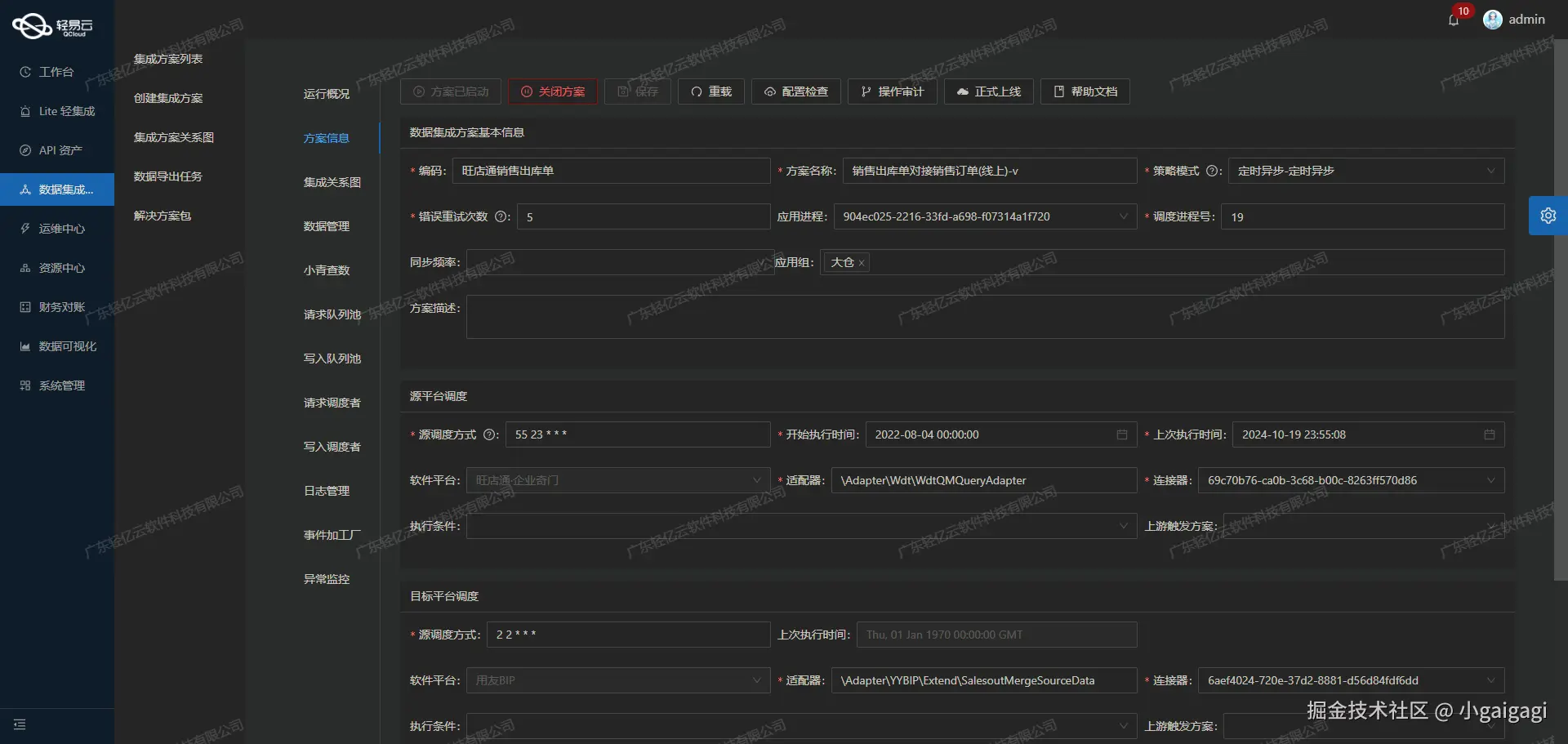 经过清洗和转换后的数据,需要通过金蝶云星空API接口批量写入目标平台。元数据配置中定义了具体的API调用参数,例如: