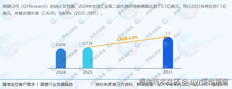 基于根据QYResearch最新调研报告显示,数据,2024年全球工业级二硫化钨(WS₂)市场规模达0.7亿美元,预计2031年将增至1.1亿美元,2025-2031年CAGR为6.8%。中国作为全球最大生产国(2024年产能占比超60%),正通过技术升级与区域市场拓展加速抢占全球份额。未来五年,高纯度产品(≥99.99%)与新能源材料应用(电极材料、半导体材料)将成为增长核心驱动力,而北美关税政策与欧盟环保法规将重塑全球供应链布局。