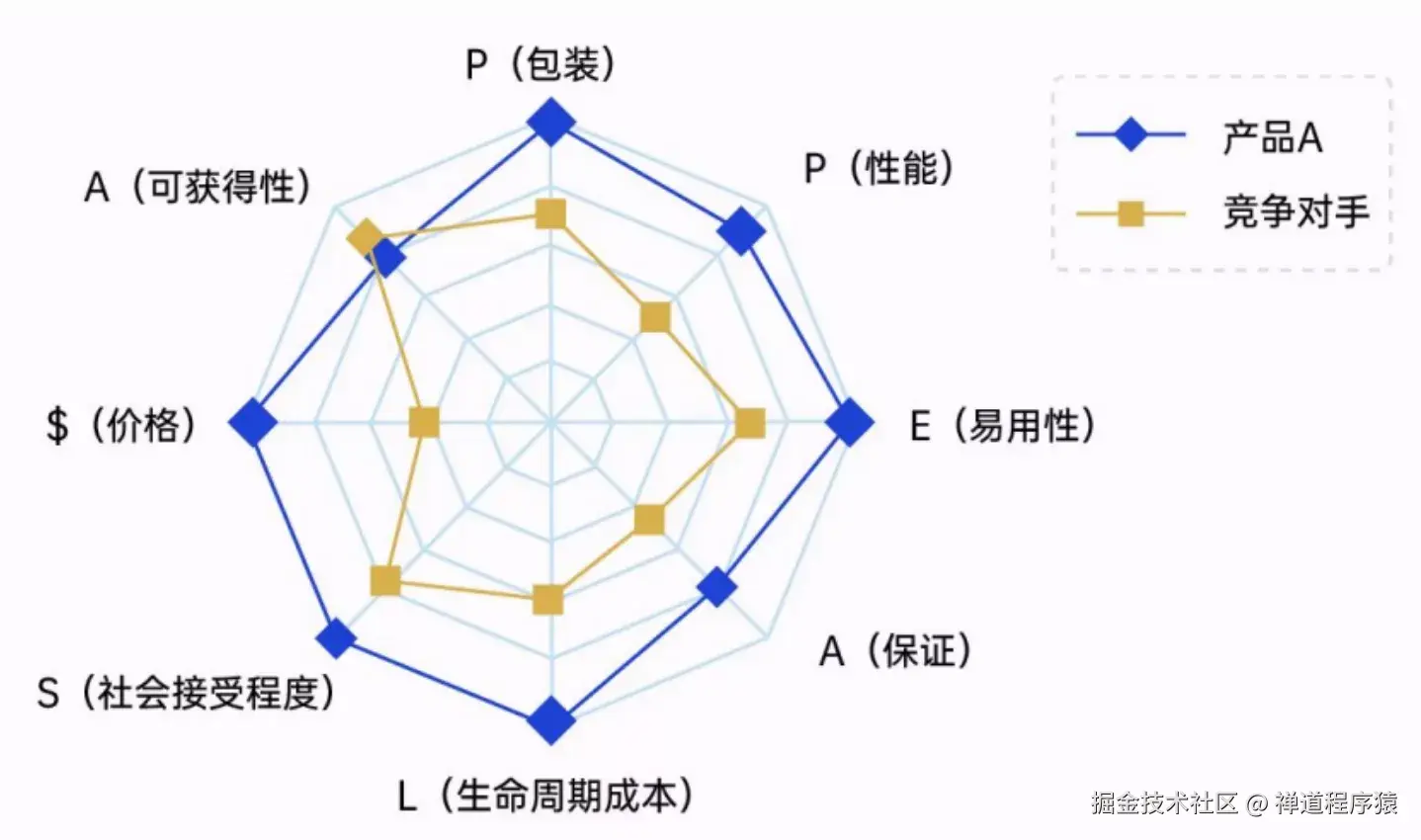 以$APPEALS为例,可将产品分为如下需求维度,更好地判断用户的期望、竞争对手的水平以及自身与行业标准之间的差距:
