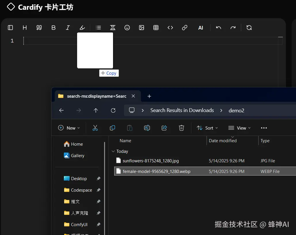除了粘贴操作,你也可以直接将本地图片从文件夹拖拽到编辑器中,系统会自动识别并上传。