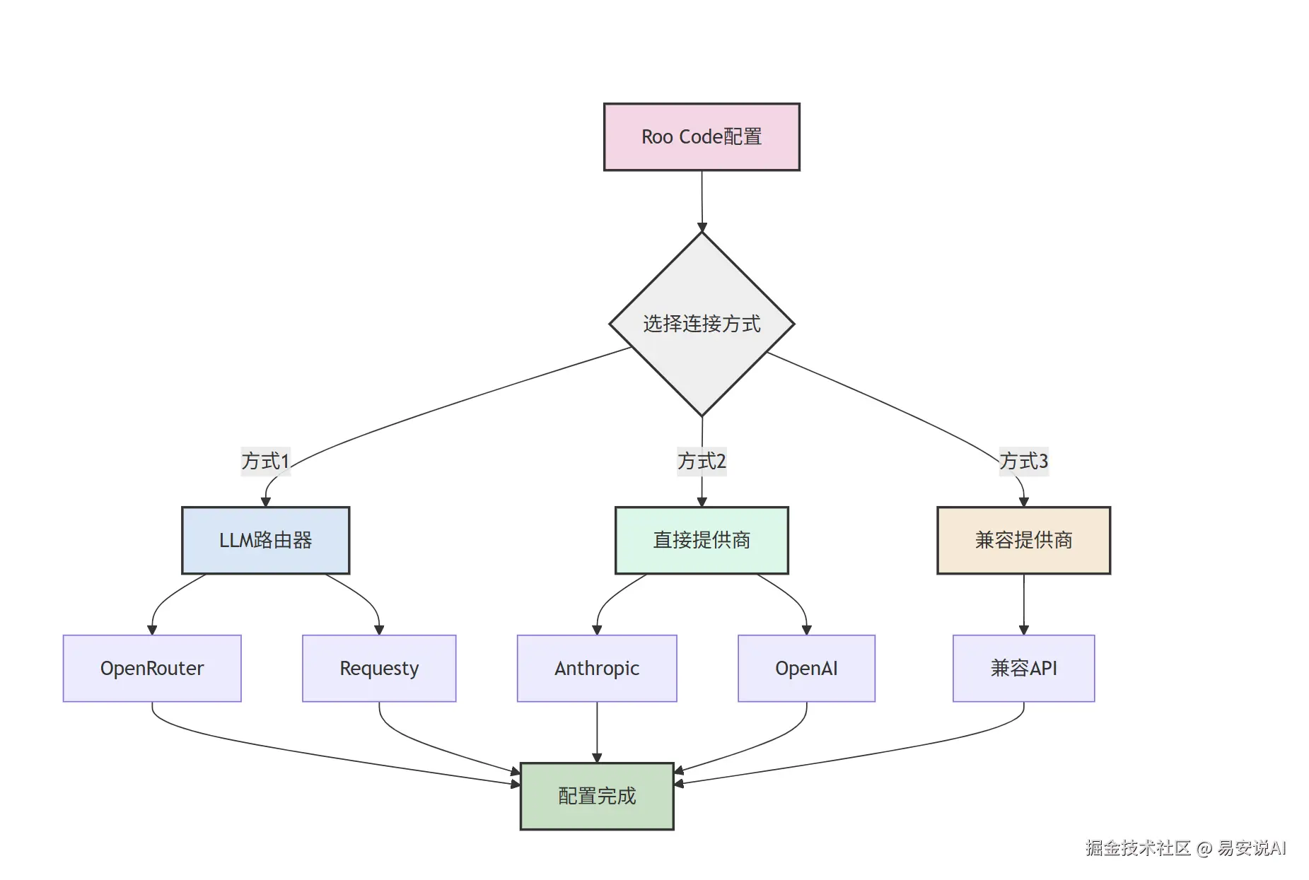 Roo Code 需要 AI 模型提供商提供的 API 密钥才能运行,这里我们采用的是openAI compatible的方式,方式3