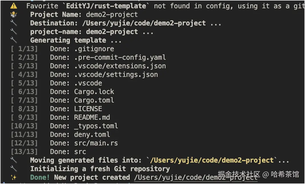 最后我们再运行cargo generate EditYJ/rust-template试试生成新项目看看我们的项目名称是否填充到了对应的位置: