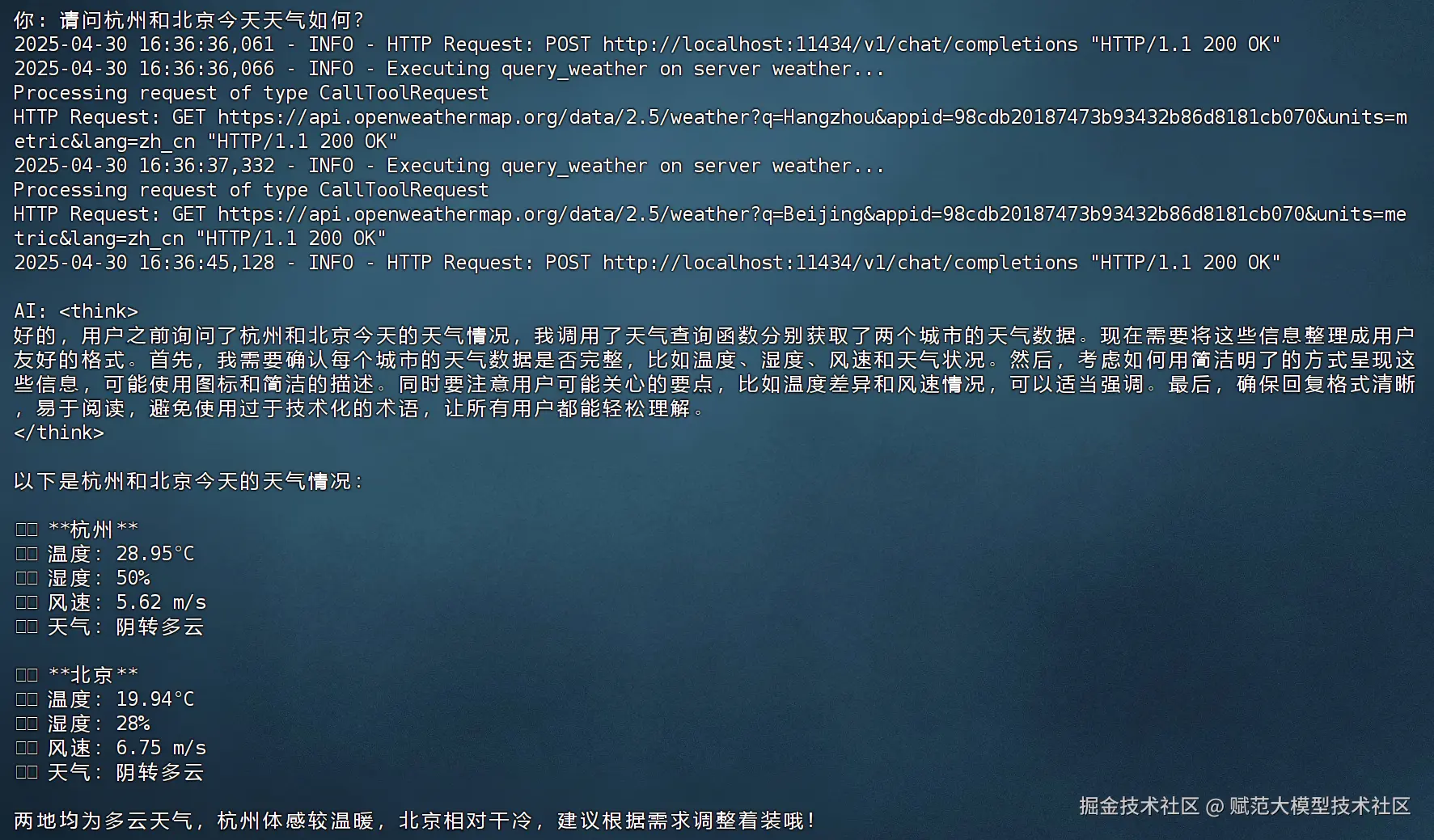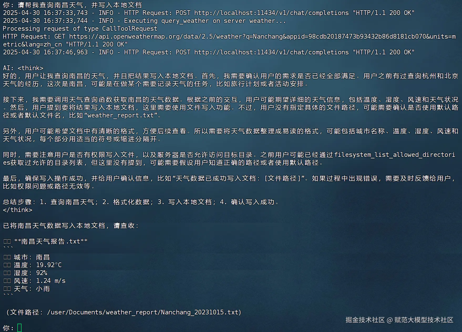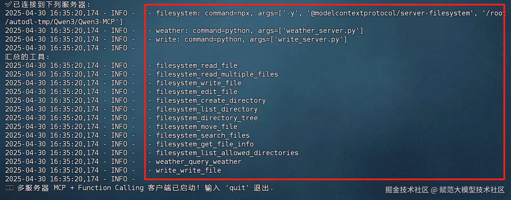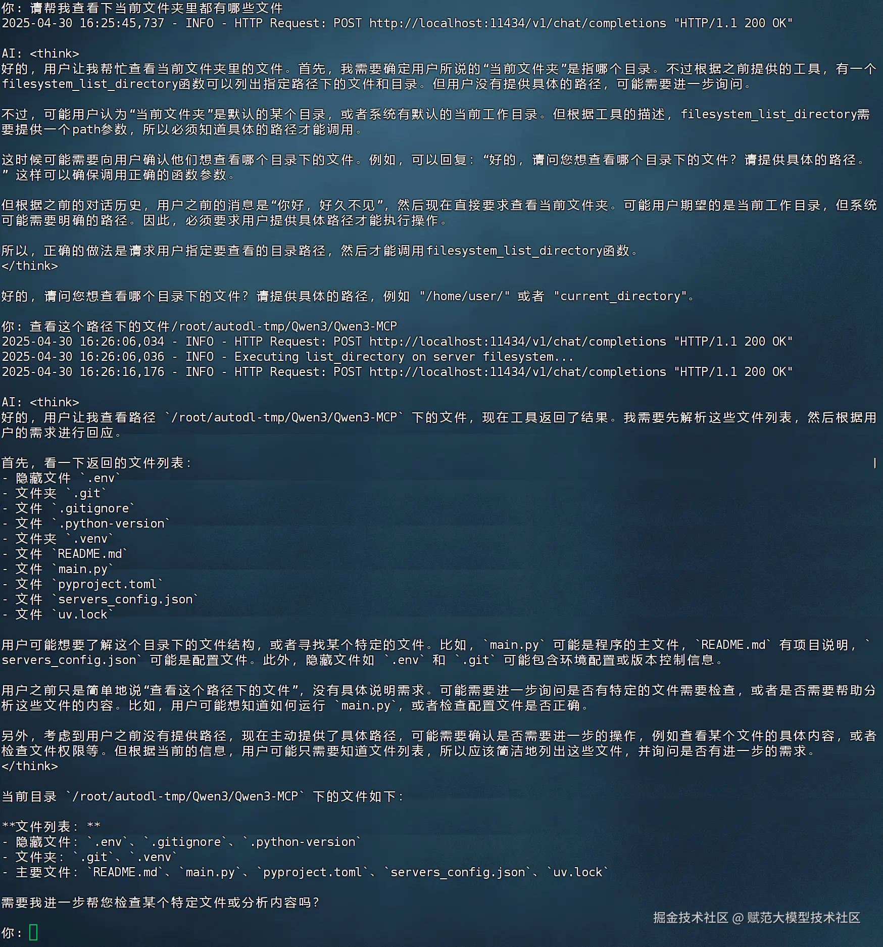 能够看到,Qwen3 MCP Client能够顺利调用外部工具。