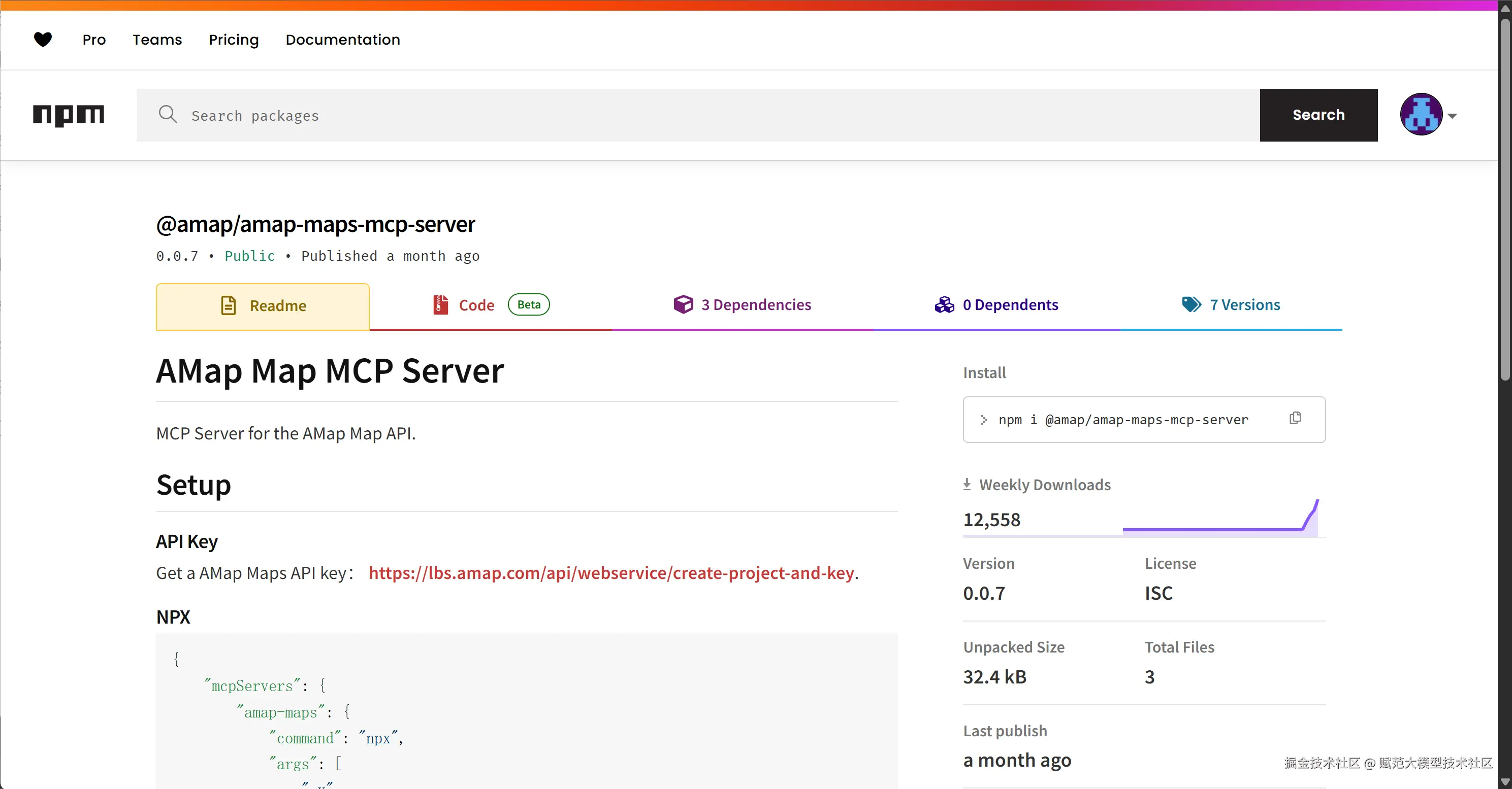 而这个@amap/amap-maps-mcp-server库是一个托管在www.npmjs.com/上的库,