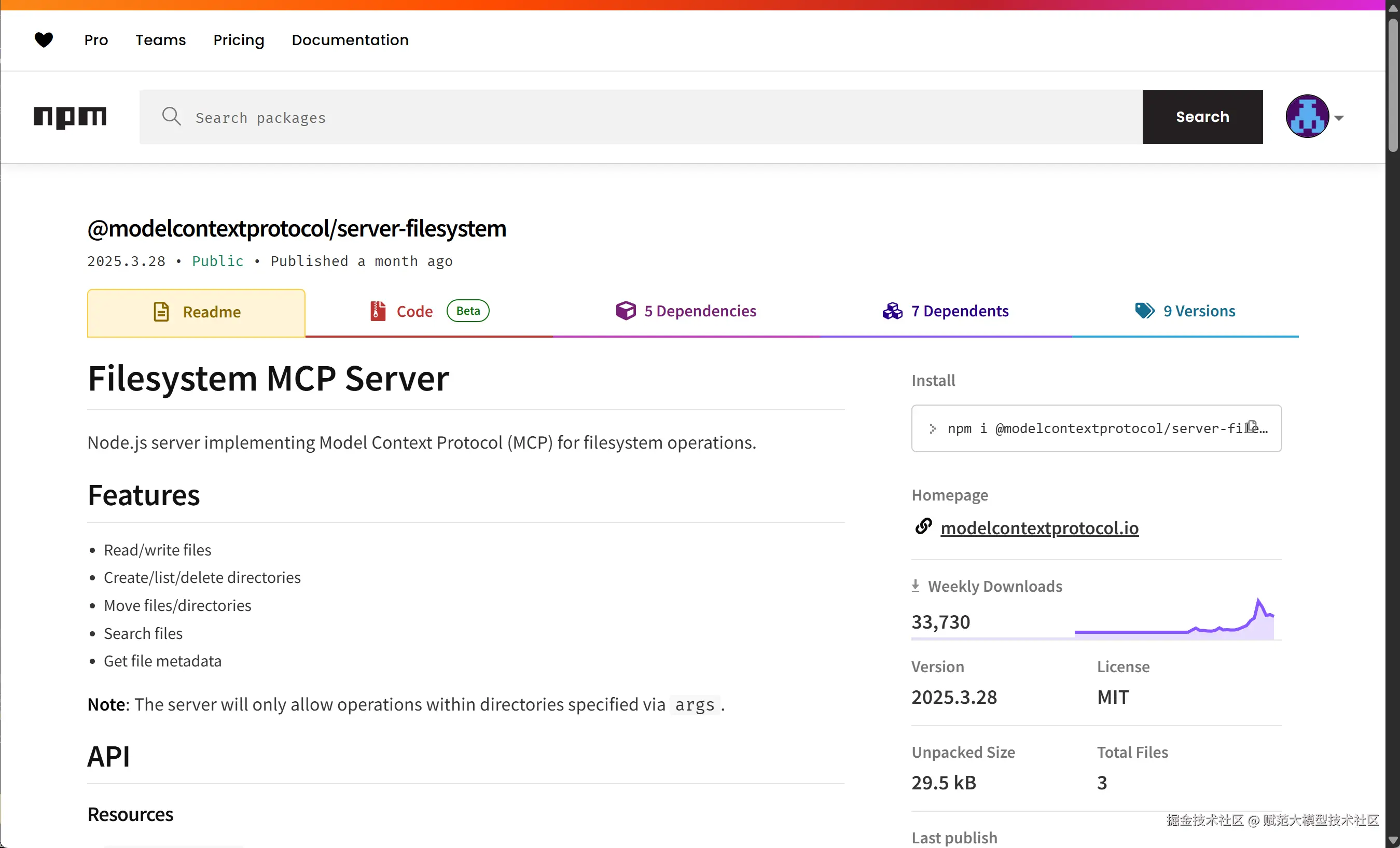 借助Filesystem,我们可以高效便捷操作本地文件夹。同时Filesystem也是一个js项目,源码托管在npm平台上:(www.npmjs.com/package/@mo…